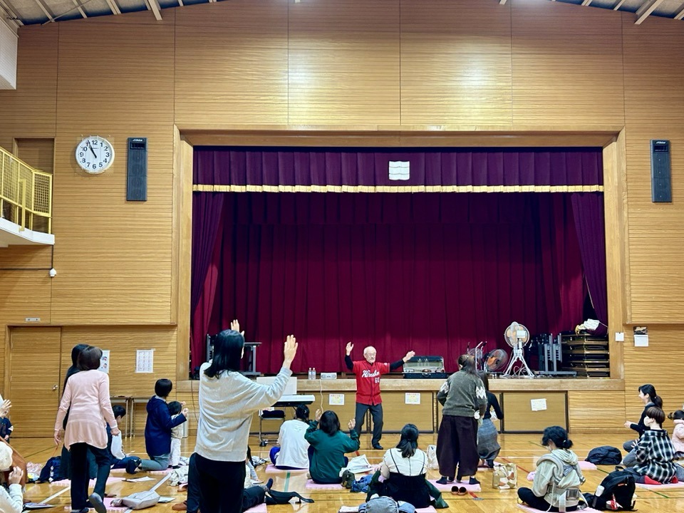広島市口田公民館(安佐北区)での「スマイル子育て講座」における乳幼児と保護者が対象のコンサート。