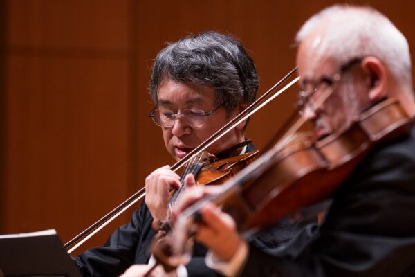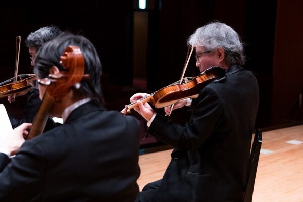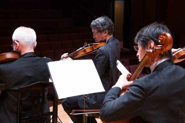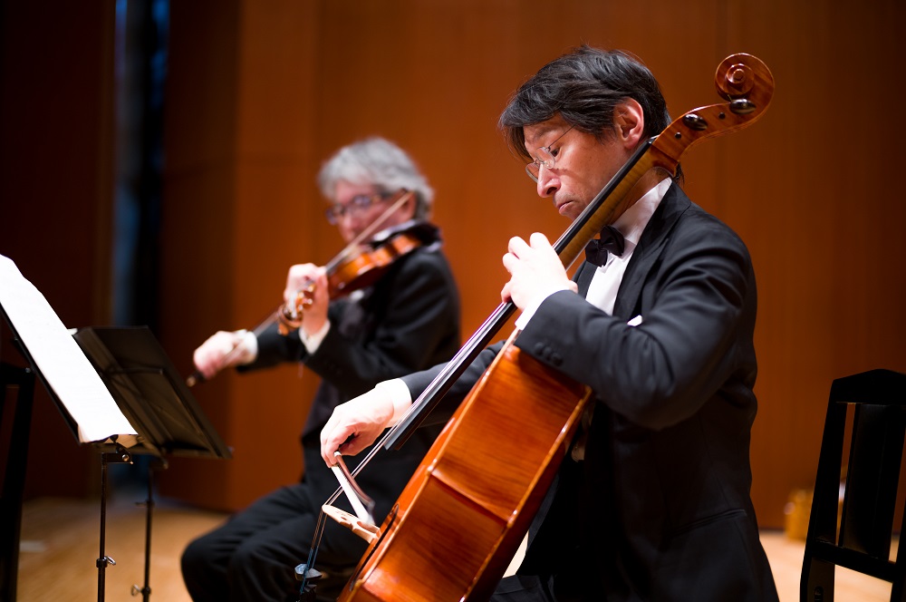 「マイ・ハート弦楽四重奏団ひろしま」の演奏体型は「田」の字型(命名は音楽評論家池田卓夫氏)。