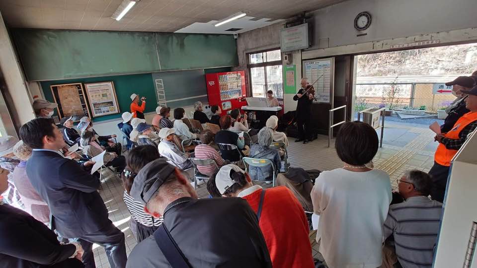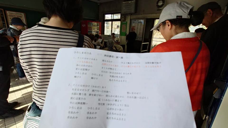 2026.04.05 CONCERT NEWS okitan日記 4月5日(日)備後庄原→三次→向原→志和口→広島を繋ぐ「みんなの芸備線」コンサート! 4月5日(日)、 午前10時より午後6時まで、 備後庄原駅に始まり、 三次駅・向原駅・志和口駅、 そして、 広島駅南口地下広場までの5JR駅での「みんなの芸備線」コンサート、 いろんな出会いと足跡を残して終了しました。 本当にありがとうございました。 写真は志和口駅での模様(友人撮影)。 この一連のコンサートでは、 「ひろしまのうた」がテーマソング! みんなで歌いました。