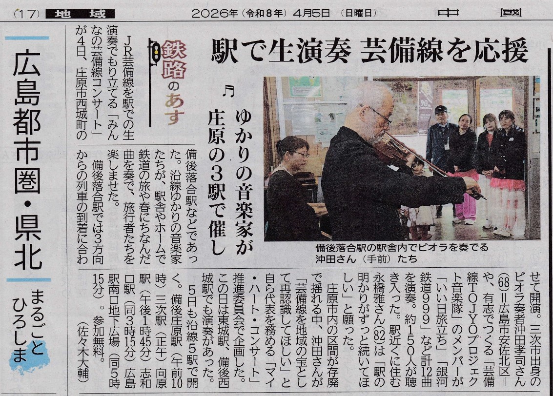 芸備線備後落合駅での「みんなの芸備線」コンサートの模様と、